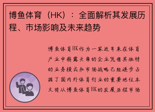 博鱼体育(HK):全面解析其发展历程、市场影响及未来趋势